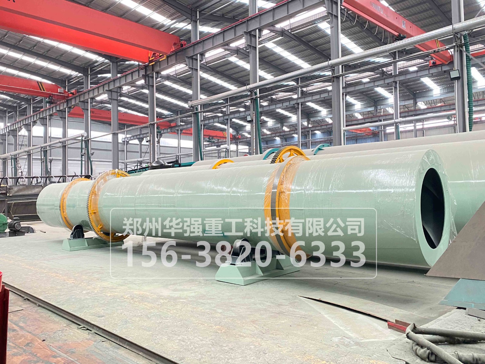 3、該機長度縮短,有利于工藝布置。整機長度比單筒烘干機縮短約40%左右,從而減少廠房的建筑面積,節(jié)約工程投資,也更適合于老廠改造的工藝布置。